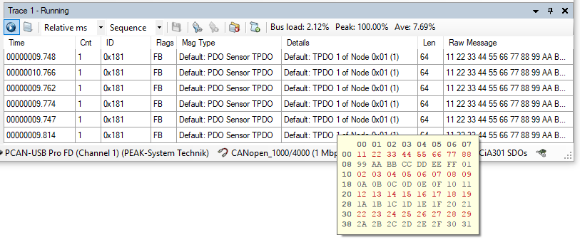 CANopen FD Trace Pop-Up