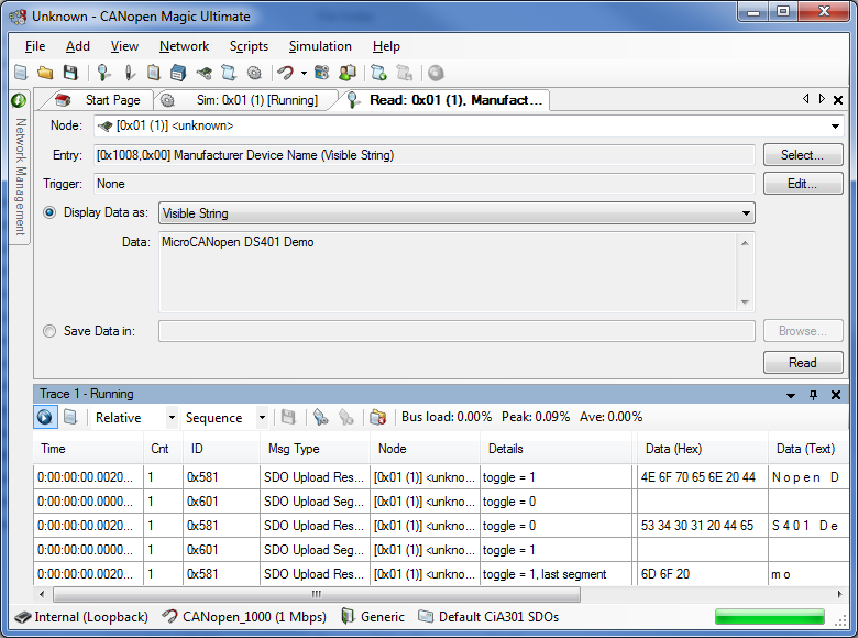 CANopen Magic ist ein vielseitiges Softwaretool zur Überwachung, Analyse, Trace, Konfiguration, Simulation und Testung von CANopen und CANopen FD Netzwerken und Geräten. Es enthält Funktionen für die gesamte Lebensdauer eines CANopen-Netzes: von der Entwicklung und Test bis hin zur Systemintegration und Performance-Analyse. Verwenden Sie ausgeklügelte Trace-Filterung und Knotenzugriff, um alle Aspekte Ihres Netzwerks zu überwachen, zu analysieren und zu testen. Simulieren Sie Knoten, die noch in der Entwicklung sind.